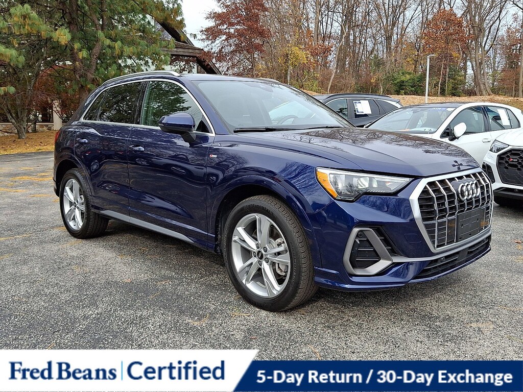 2022 Audi Q3 Premium S Line quattro 2.0L 4-Cylinder TFSI 8-Speed Automatic with Tiptronic quattro 4D Sport Utility Navarra Blue Metallic Great Service History, Triton Certified Vehicle, 7 Year / 100k Powertrain Warranty, 12 Month / 12,000 Mile Comprehensive Warranty, Remainder of Factory Warranty, Free First Oil Change, Auto Reward Program, 19" Wheel Package, Alarm w/Motion Sensor, Audi Advanced Key, Convenience Package, Driver Memory, Frameless Auto-Dimming Interior Mirror w/Compass, Heated Power-Folding Exterior Mirrors, HomeLink Garage Door Opener, SiriusXM All Access Service, Wheels: 19" 5-Double-Spoke Dynamic Design.CARFAX One-Owner. Clean CARFAX. Odometer is 24839 miles below market average!Certified. Certification Program Details: Triton Certified Shield ⢠7-Year or up to 100,000-Mile Powertrain Limited Warranty ⢠12-Month or 12,000-Mile Comprehensive Coverage ($100 deductible) ⢠100+ Multipoint Inspection ⢠All Fluids Checked ⢠Tires 6/32" or Better ⢠50% or Better brakes ⢠Oil, Lube, & Filter Service Completed ⢠PA State Inspection & Emissions Test ⢠5-Day Return Policy1 ⢠30-Day Exchange Policy2 ⢠CARFAXTM Report ⢠AutoRewards Membership ⢠See salesperson for additional offers & complete details.For better peace of mind all our used vehicles have a 127-point inspection and come with a 5-day return, 30-day exchange (As-Is vehicles are excluded). Our exclusive Auto Rewards Program provides better value with Free First Oil change, Free Pa State Safety inspections, discounts for local merchants and more. Plus, you can earn up to $2000 towards your next vehicle just by servicing with Fred Beans! As Fred Beans always says, our used cars are better because our reputation depends on it.Although every reasonable effort has been made to ensure the accuracy of the information contained on this site, absolute accuracy cannot be guaranteed. This site, and all information and materials appearing on it, are presented to the user "as is" without warranty of any kind, either express or implied. All vehicles are subject to prior sale. Price does not include applicable tax, title, license, processing and/or documentation fees. â¡Vehicles shown at different locations are not currently in our inventory (Not in Stock) but can be made available to you at our location within a reasonable date from the time of your request, not to exceed one week. Residency restrictions may apply.