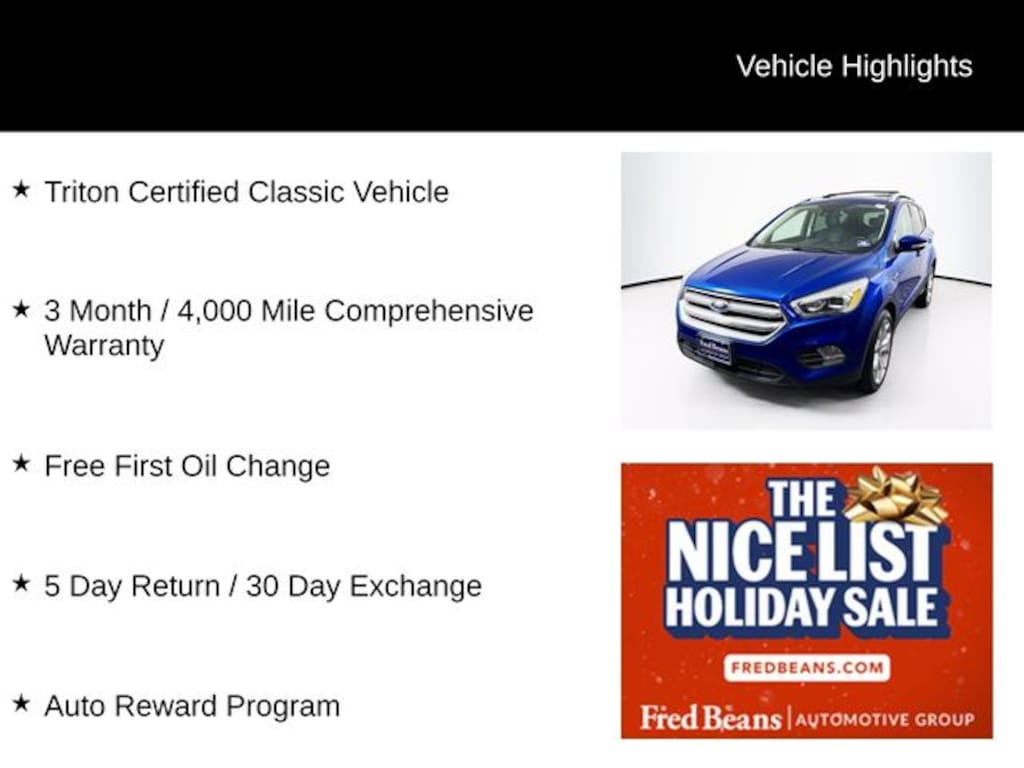 2019 Ford Escape Titanium Titanium EcoBoost 2.0L I4 GTDi DOHC Turbocharged VCT 6-Speed Automatic 4WD 4D Sport Utility Lightning Blue Triton Certified Classic Vehicle, 3 Month / 4,000 Mile Comprehensive Warranty, Free First Oil Change, 5 Day Return / 30 Day Exchange, Auto Reward Program, 4WD.