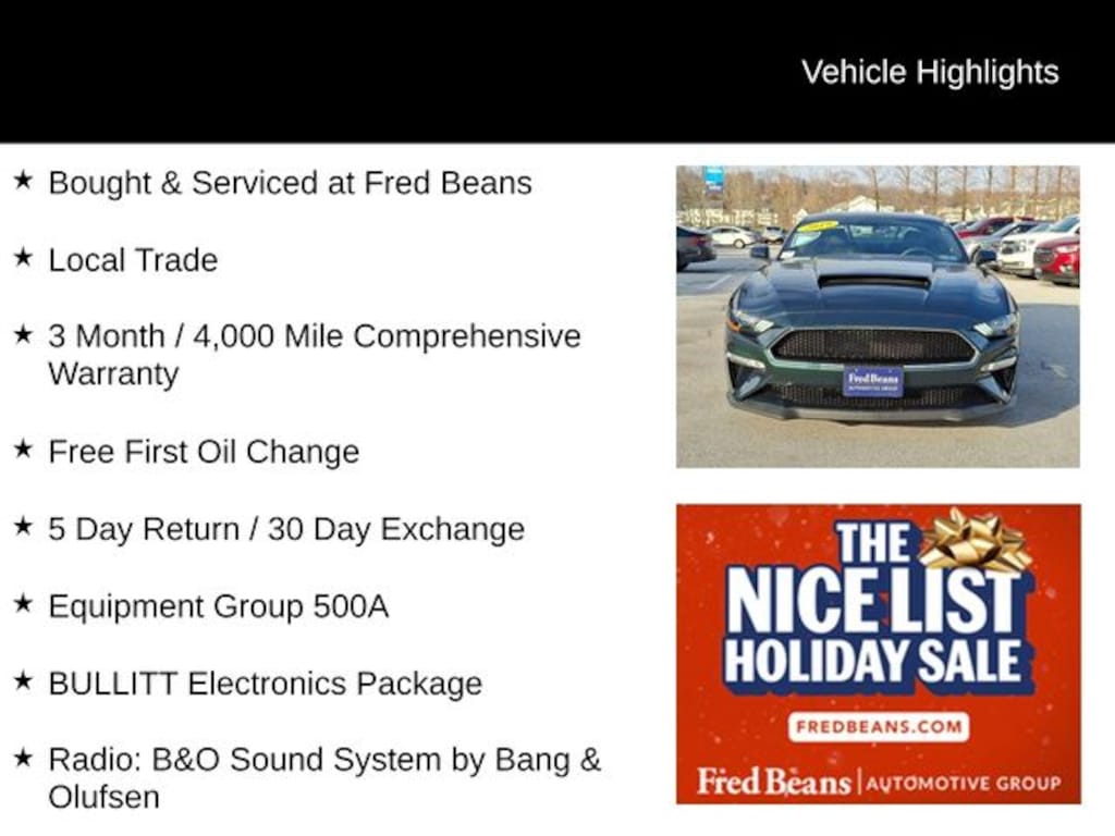 As a Ford Blue Certified pre-owned vehicle, this Mustang Bullitt has undergone a rigorous 139-point inspection and comes with a transferable warranty, roadside assistance, and 11,000 FordPass Rewards Points to use towards your first maintenance visit. This comprehensive certification program gives you the peace of mind and confidence you deserve when purchasing a pre-owned vehicle.