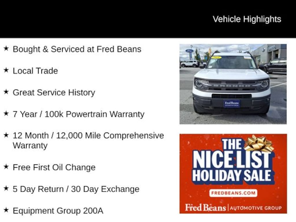 2021 Ford Bronco Sport Big Bend 1.5L EcoBoost 8-Speed Automatic 4WD 4D Sport Utility Oxford White Bought & Serviced at Fred Beans, Local Trade, Great Service History, 7 Year / 100k Powertrain Warranty, 12 Month / 12,000 Mile Comprehensive Warranty, Free First Oil Change, 5 Day Return / 30 Day Exchange, Equipment Group 200A, SYNC 3 Communications & Entertainment System.