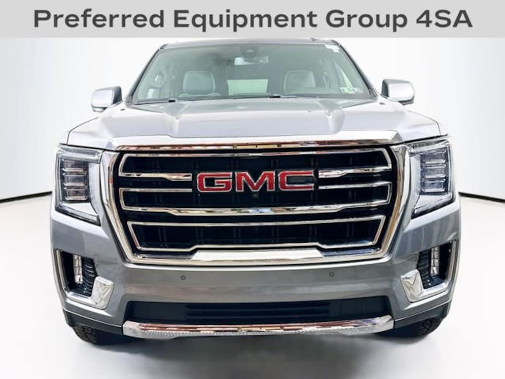 2022 GMC Yukon SLT EcoTec3 5.3L V8 10-Speed Automatic with Overdrive 4WD 4D Sport Utility Satin Steel Metallic 4WD, 2 Presets For Outside Rearview Mirrors, 2 Presets For Power Driver Seat, 3rd Row 60/40 Power-Folding Split-Bench Seat, Automatic Stop/Start, Bose 9-Speaker Stereo Audio System Feature, Bright Chrome Bodyside Moldings, Bright Front & Rear Door Sill Plates, Chrome Door Handles w/Body-Color Strip, Hands-Free Power Programmable Rear Liftgate, HD Surround Vision, Heated & Ventilated Driver & Front Passenger Seats, Heated 2nd Row Outboard Position Seats, Heated Driver & Front Passenger Seats, Heated Steering Wheel, Inside Rear-View Auto-Dimming Mirror, Max Trailering Package, Outside Heated Power-Adjustable Mirrors, Power Release 2nd Row 60/40 Split-Folding Bench Seat, Power Tilt & Telescopic Steering Column, Preferred Equipment Group 4SA, Rear Pedestrian Alert, Safety Alert Seat, SLT Luxury Package, Start/Stop System Disable Button, Universal Home Remote, Wireless Charging.