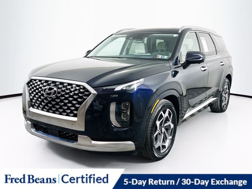 2021 Hyundai Palisade Calligraphy Calligraphy V6 8-Speed Automatic with SHIFTRONIC AWD 4D Sport Utility Moonlight Cloud Bought & Serviced at Fred Beans, Local Trade, Great Service History, Factory Certified Vehicle, Free First Oil Change, 5 Day Return / 30 Day Exchange, Auto Rewards Program, Apple CarPlay & Android Auto, Auto High-beam Headlights, Auto-leveling suspension, Front dual zone A/C, harman/kardon® Speakers, Heads-Up Display, Heated & Ventilated Front Bucket Seats, Heated door mirrors, Heated rear seats, Heated steering wheel, Illuminated entry, Memory seat, Navigation System, Power door mirrors, Power driver seat, Power Liftgate, Power moonroof, Power passenger seat, Premium Nappa Leather Seat Trim, Radio: AM/FM/MP3 Premium Audio System, Rain sensing wipers, Steering wheel mounted audio controls, Turn signal indicator mirrors, Ventilated rear seats, Wheels: 20" x 7.5J Calligraphy Exclusive Alloy.