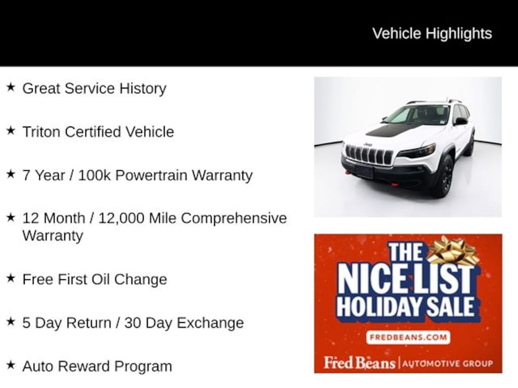 2022 Jeep Cherokee Trailhawk Trailhawk 3.2L V6 9-Speed 948TE Automatic 4WD 4D Sport Utility Bright White Clearcoat Great Service History, Triton Certified Vehicle, 7 Year / 100k Powertrain Warranty, 12 Month / 12,000 Mile Comprehensive Warranty, Free First Oil Change, 5 Day Return / 30 Day Exchange, Auto Reward Program.