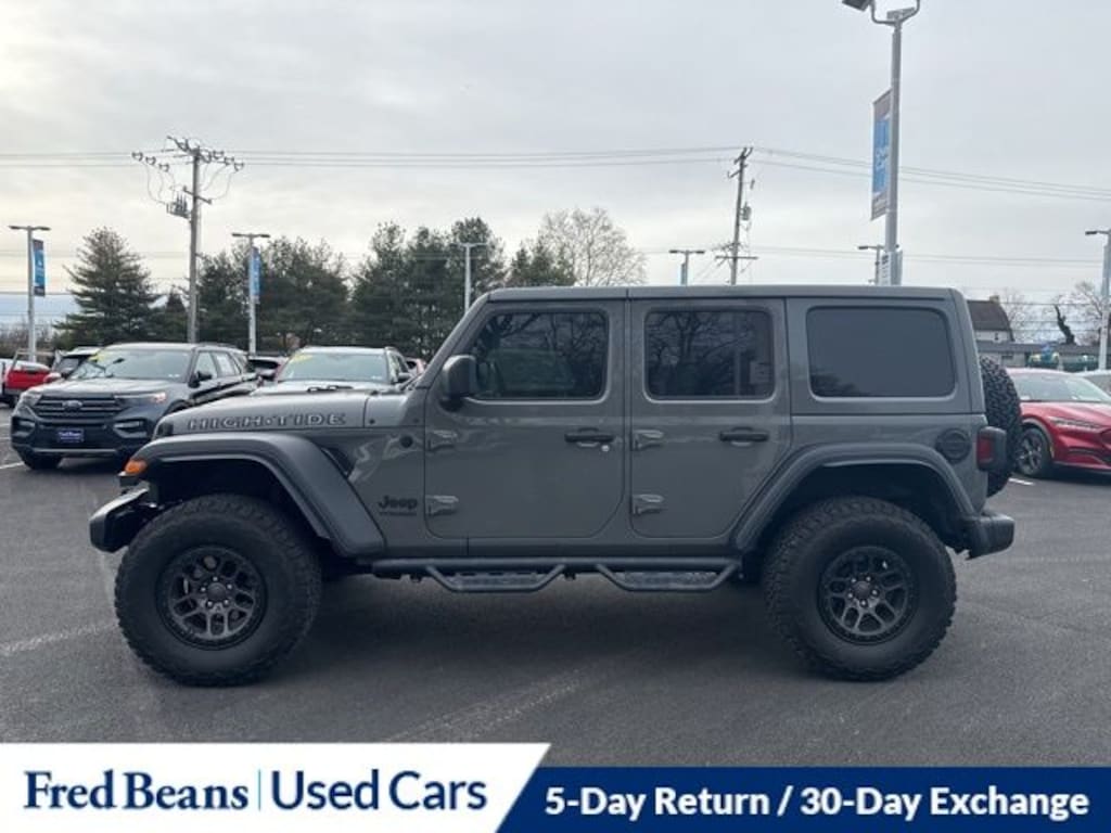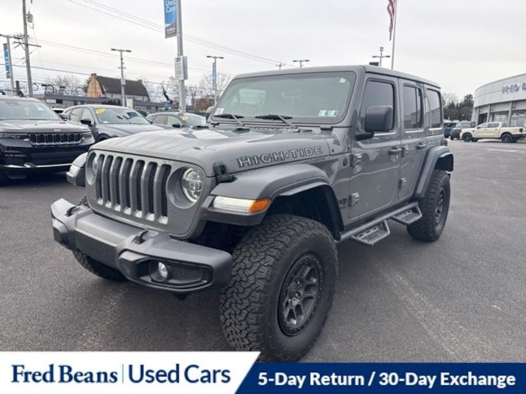 2022 Jeep Wrangler Unlimited High Tide 3.6L V6 24V VVT 8-Speed Automatic 4WD 4D Sport Utility Sting-Gray Clearcoat Great Service History, 3 Month / 4,000 Mile Comprehensive Warranty, Free First Oil Change, Auto Reward Program.