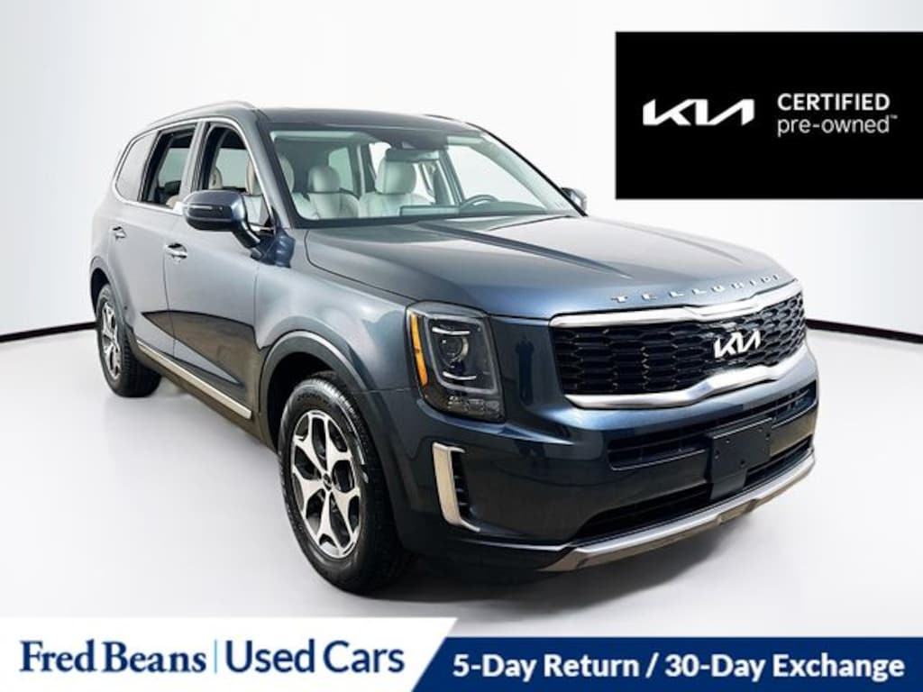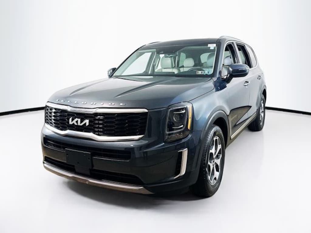 Recent Arrival! 2022 Kia Telluride EX 3.8L V6 DOHC 8-Speed Automatic FWD 4D Sport Utility Gravity Gray Kia Certified Pre-Owned Certified, 3.648 Axle Ratio, 3rd row seats: split-bench, 4-Wheel Disc Brakes, 6 Speakers, ABS brakes, Air Conditioning, Alloy wheels, AM/FM radio: SiriusXM, Apple CarPlay & Android Auto, Auto-dimming Rear-View mirror, Automatic temperature control, Brake assist, Bumpers: body-color, Carpeted Floor Mats, Compass, Delay-off headlights, Driver door bin, Driver vanity mirror, Dual front impact airbags, Dual front side impact airbags, Electronic Stability Control, Emergency communication system: 911 Connect, Four wheel independent suspension, Front anti-roll bar, Front Bucket Seats, Front Center Armrest, Front dual zone A/C, Front reading lights, Fully automatic headlights, Heated & Ventilated Front Bucket Seats, Heated door mirrors, Heated front seats, Hybrid Cargo Net, Illuminated entry, Knee airbag, Leather Seat Trim, Leather Shift Knob, Leather steering wheel, Low tire pressure warning, Navigation System, Occupant sensing airbag, Outside temperature display, Overhead airbag, Overhead console, Panic alarm, Passenger door bin, Passenger vanity mirror, Power door mirrors, Power driver seat, Power Liftgate, Power moonroof, Power passenger seat, Power steering, Power windows, Radio data system, Radio: AM/FM Display Audio System, Rear air conditioning, Rear anti-roll bar, Rear audio controls, Rear reading lights, Rear seat center armrest, Rear window defroster, Rear window wiper, Reclining 3rd row seat, Remote keyless entry, Roof rack: rails only, Security system, Smart Key w/ Push Button and Remote Start, Speed control, Speed-sensing steering, Split folding rear seat, Spoiler, Steering wheel mounted audio controls, Tachometer, Telescoping steering wheel, Tilt steering wheel, Traction control, Trip computer, Turn signal indicator mirrors, Variably intermittent wipers, Ventilated front seats, Wheels: 18" x 7.5" Machined Alloy.