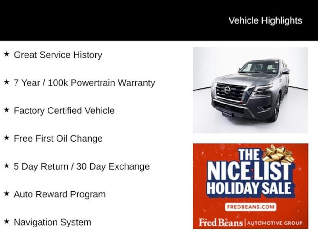 Recent Arrival! 2022 Nissan Armada Platinum Platinum 5.6L V8 DOHC 32V LEV3-ULEV125 400hp 7-Speed Automatic 4WD 4D Sport Utility Gun Metallic Great Service History, 7 Year / 100k Powertrain Warranty, Factory Certified Vehicle, Free First Oil Change, 5 Day Return / 30 Day Exchange, Auto Reward Program, 4WD, Navigation System.