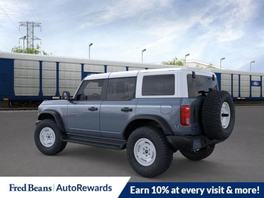 Azure Gray Metallic Tri-Coat 2025 Ford Bronco Heritage Edition 4WD 10-Speed Automatic 2.7L EcoBoost V6 Price includes: $1000 - Final Days Mega Bonus Cash $1500 - Bonus Customer Cash