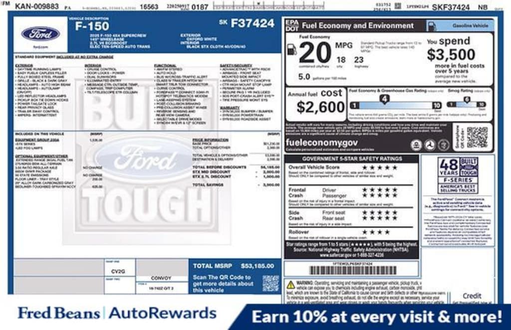 4WD. 2025 Ford F-150 STX 4D SuperCrew STX 2.7L V6 EcoBoost 4WD Oxford White Price includes: $1000 - Bonus Customer Cash $1250 - Retail Bonus Cash $2000 - Retail Customer Cash