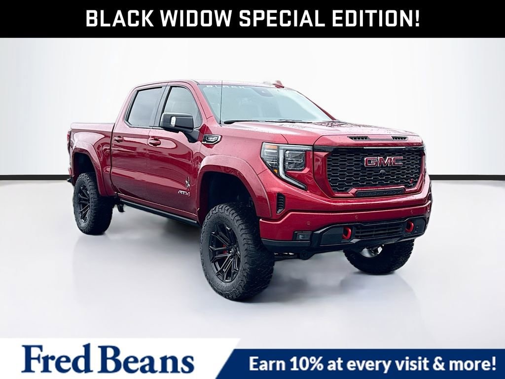 6 INCH SUSPENSION LIFT SYSTEM, 20 IN BLACK WIDOW WHEELS, 35 INCH PREMIUM ALL TERRAIN TIRES, BLACK WIDOW RED CALIPER COVERS, SPEEDOMTER CALIBRATION, BODY COLOR FENDER FLARES, POWER RUNNING BOARDS, BLACK WIDOW CUSTOM HOOD VENTS, LEATHER SEAT COVERS WITH CUSTOM STITCH, RED LED INTERIOR LIGHTING, BLACK WIDOW LED PUDDLE LIGHTS, GRILLE REPLACEMENT WITH PAINTED ACCENTS, BLACK WIDOW LOGO CENTER CAPS, TINTED FRONT WINDOWS, BLACK WIDOW PERFORMANCE FRONT WINDSHIELD SNIPE, PREMIUM QUALITY BLACK WIDOW EXTERIOR BADGING, FMVSS COMPLIANT, 3YR/36,000 MILE WARRANTY.New Price! Volcanic Red Tintcoat 2025 GMC Sierra 1500 AT4 Black Widow 4WD 10-Speed Automatic 3.0L I6 Sierra 1500 AT4 Black Widow, 10-Speed Automatic, 4WD, Jet Black With Kalahari Accents Leather, 10-Way Power Driver Seat Adjuster w/Lumbar, 10-Way Power Passenger Seat Adjuster w/Lumbar, 120-Volt Bed Mounted Power Outlet, 120-Volt Interior Power Outlet, 2 Charge/Data USB Ports Inside Center Console, 2 Type-C Charge-Only Rear USB Ports, 2 USB Ports, 220 Amp Alternator, 3.23 Rear Axle Ratio, 4-Wheel Disc Brakes, 7 Speakers, ABS brakes, Air Conditioning, Alloy wheels, AM/FM radio: SiriusXM with 360L, Apple CarPlay/Android Auto, AT4 Preferred Package, AT4 Premium Package, Auto High-beam Headlights, Auto-dimming door mirrors, Auto-dimming Rear-View mirror, Auto-Locking Rear Differential, Automatic Emergency Braking, Automatic temperature control, Bed View Camera, Black Chrome Grille Insert Bars, Block heater, Brake assist, Buckle to Drive, Bumpers: body-color, Color-Keyed Carpeting Floor Covering, Compass, Deep-Tinted Glass, Delay-off headlights, Driver door bin, Driver Memory, Driver vanity mirror, Dual front impact airbags, Dual front side impact airbags, Electric Rear-Window Defogger, Electronic Stability Control, Emergency communication system: OnStar, Engine Block Heater, Floor-Mounted Center Console, Following Distance Indicator, Forward Collision Alert, Front anti-roll bar, Front Bucket Seats, Front Center Armrest, Front dual zone A/C, Front fog lights, Front License Plate Kit, Front Pedestrian Braking, Front Prem Floor Liners w/Removable Carpet Insert, Front Rain-Sensing Wipers, Front reading lights, Front wheel independent suspension, Fully automatic headlights, HD Surround Vision, Heated 2nd Row Outboard Seats, Heated door mirrors, Heated Driver & Front Outboard Passenger Seating, Heated front seats, Heated rear seats, Heated steering wheel, Heavy-Duty Air Filter, Hill Descent Control, Hitch Guidance, Hitch View, Illuminated entry, In-Vehicle Trailering System App, Integrated Trailer Brake Controller, IntelliBeam Automatic High Beam On/Off, Keyless Open & Start, Lane Keep Assist w/Lane Departure Warning, LED Cargo Area Lighting, Low tire pressure warning, Memory seat, Multicolor 15 Diagonal Head-Up Display, Navigation System, Occupant sensing airbag, Off-Road High Clearance Step (LPO), Off-Road Suspension, OnStar Services Capable, Outside temperature display, Overhead airbag, Overhead console, Panic alarm, Passenger door bin, Passenger vanity mirror, Perforated Front Leather Seat Trim, Perimeter Lighting, Power Door Locks, Power door mirrors, Power driver seat, Power Front Passenger Windows w/Express Up/Down, Power Front Windows w/Driver Express Up/Down, Power passenger seat, Power Rake & Telescoping Steering Column, Power Rear Windows w/Express Down, Power Sliding Rear Window w/Rear Defogger, Power steering, Power Sunroof, Power windows, Preferred Equipment Group 4SB, Premium Bose 7-Speaker Sound System, Push Button Start, Radio data system, Radio: Premium GMC Infotainment Audio System, Rain sensing wipers, Rear Camera Mirror, Rear Cross Traffic Braking, Rear Pedestrian Detection, Rear Prem Floor Liners w/Removable Carpet Insert, Rear reading light Price includes: $250 - December Buick GMC Holiday Event Bonus Cash. Exp. 01/02/2026 $2500 - Buick & GMC Consumer Cash Program. Exp. 01/02/2026 $500 - GM Bonus Cash. Exp. 01/02/2026 Pri