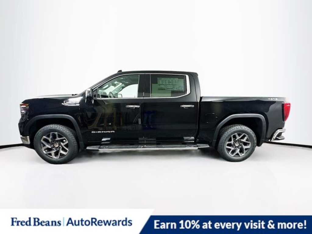 Onyx Black 2026 GMC Sierra 1500 SLT 4WD 10-Speed Automatic EcoTec3 6.2L V8 10-Speed Automatic, 4WD, Black Leather.