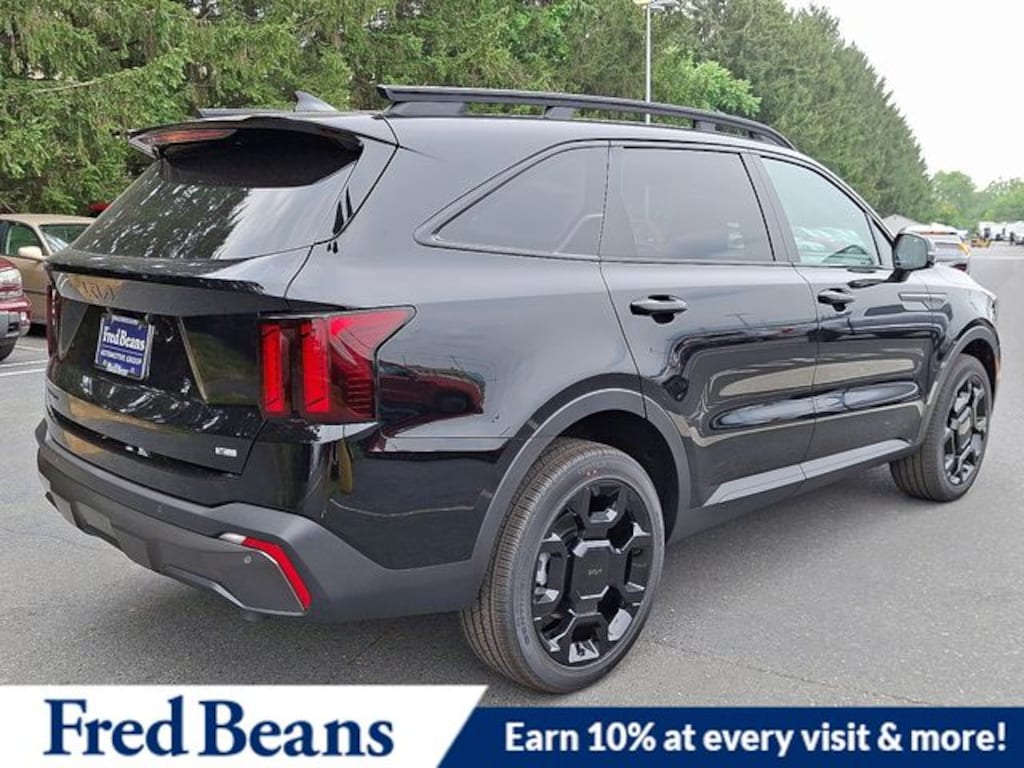 Visit our Website for a Complimentary CarFax Report!!!, Free First Oil Change, Auto Reward Program, AWD, 3rd row seats: split-bench, 4-Wheel Disc Brakes, 6 Speakers, ABS brakes, Air Conditioning, Alloy wheels, AM/FM radio: SiriusXM, Apple CarPlay & Android Auto, Auto High-beam Headlights, Auto-dimming Rear-View mirror, Automatic temperature control, Brake assist, Bumpers: body-color, Delay-off headlights, Driver door bin, Driver vanity mirror, Dual front impact airbags, Dual front side impact airbags, Electronic Stability Control, Emergency communication system: 911 Connect, Exterior Parking Camera Rear, Four wheel independent suspension, Front anti-roll bar, Front Bucket Seats, Front Center Armrest, Front dual zone A/C, Front fog lights, Front reading lights, Fully automatic headlights, Heated door mirrors, Heated Front Bucket Seats, Heated front seats, Illuminated entry, Knee airbag, Leather Shift Knob, Leather steering wheel, Low tire pressure warning, Navigation System, Occupant sensing airbag, Outside temperature display, Overhead airbag, Overhead console, Panic alarm, Passenger door bin, Passenger vanity mirror, Power door mirrors, Power driver seat, Power Liftgate, Power moonroof, Power passenger seat, Power steering, Power windows, Radio data system, Radio: AM/FM Standard Sound System, Rear anti-roll bar, Rear reading lights, Rear side impact airbag, Rear window defroster, Rear window wiper, Remote keyless entry, Security system, Speed control, Speed-sensing steering, Split folding rear seat, Spoiler, Steering wheel mounted audio controls, SynTex Artificial Leather Seat Trim, Tachometer, Telescoping steering wheel, Tilt steering wheel, Traction control, Trip computer, Turn signal indicator mirrors, Variably intermittent wipers, Wheels: 20" Gloss Black X-Line Alloy, AWD. 2025 Kia Sorento X-Line EX X-Line EX 2.5L I4 DGI Turbocharged DOHC 16V LEV3-SULEV30 281hp AWD Ebony Black Price includes: $1000 - Sticker Sales Event Retail Bonus Cash. Exp. 01/02/2026 $2500 - KFA Dealer Choice Program: $2500 discount and 5.25% APR for 36 months. $30.08 per $1000 financed. Available to well qualified buyers who finance through Kia Finance America. 506. Exp. 01/02/2026
