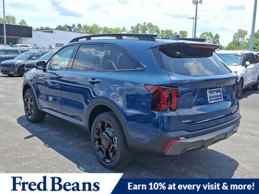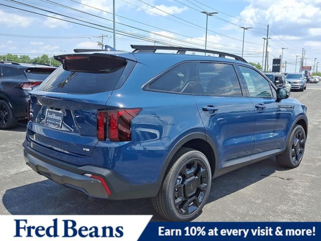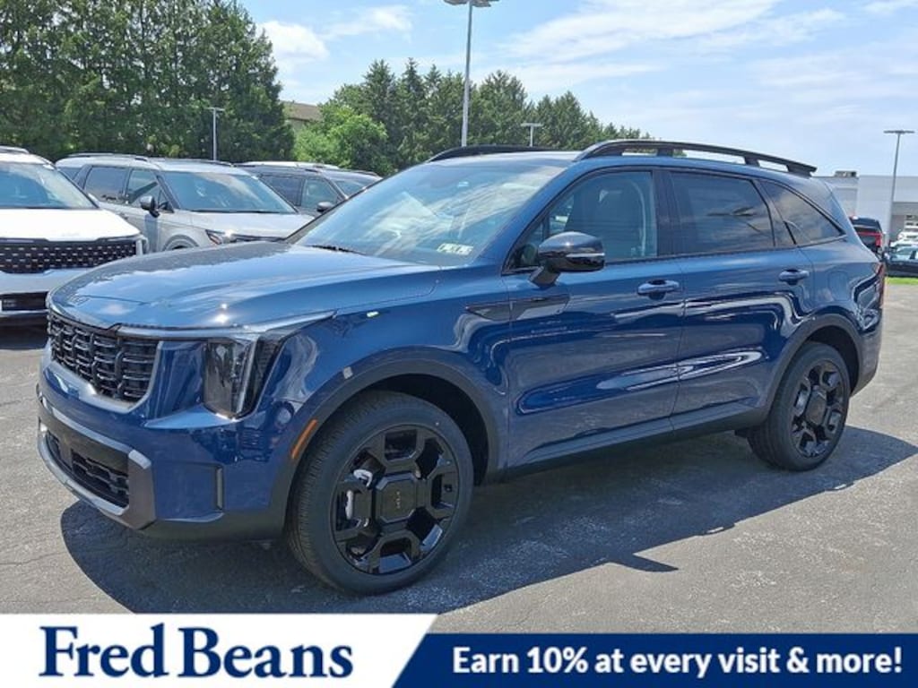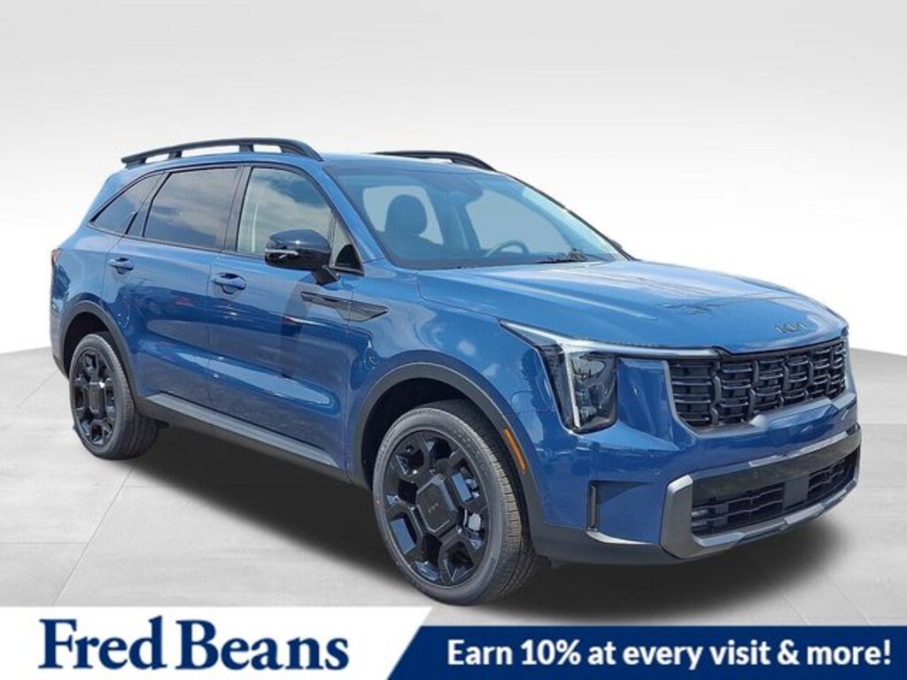 Visit our Website for a Complimentary CarFax Report!!!, Free First Oil Change, Auto Reward Program, AWD, 3rd row seats: split-bench, 4-Wheel Disc Brakes, 6 Speakers, ABS brakes, Air Conditioning, Alloy wheels, AM/FM radio: SiriusXM, Apple CarPlay & Android Auto, Auto High-beam Headlights, Auto-dimming Rear-View mirror, Automatic temperature control, Brake assist, Bumpers: body-color, Delay-off headlights, Driver door bin, Driver vanity mirror, Dual front impact airbags, Dual front side impact airbags, Electronic Stability Control, Emergency communication system: 911 Connect, Exterior Parking Camera Rear, Four wheel independent suspension, Front anti-roll bar, Front Bucket Seats, Front Center Armrest, Front dual zone A/C, Front fog lights, Front reading lights, Fully automatic headlights, Heated door mirrors, Heated Front Bucket Seats, Heated front seats, Illuminated entry, Knee airbag, Leather Shift Knob, Leather steering wheel, Low tire pressure warning, Navigation System, Occupant sensing airbag, Outside temperature display, Overhead airbag, Overhead console, Panic alarm, Passenger door bin, Passenger vanity mirror, Power door mirrors, Power driver seat, Power Liftgate, Power moonroof, Power passenger seat, Power steering, Power windows, Radio data system, Radio: AM/FM Standard Sound System, Rear anti-roll bar, Rear reading lights, Rear side impact airbag, Rear window defroster, Rear window wiper, Remote keyless entry, Security system, Speed control, Speed-sensing steering, Split folding rear seat, Spoiler, Steering wheel mounted audio controls, SynTex Artificial Leather Seat Trim, Tachometer, Telescoping steering wheel, Tilt steering wheel, Traction control, Trip computer, Turn signal indicator mirrors, Variably intermittent wipers, Wheels: 20" Gloss Black X-Line Alloy, AWD. 2025 Kia Sorento X-Line EX X-Line EX 2.5L I4 DGI Turbocharged DOHC 16V LEV3-SULEV30 281hp AWD Midnight Lake Blue Price includes: $1000 - Sticker Sales Event Retail Bonus Cash. Exp. 01/02/2026 $2500 - KFA Dealer Choice Program: $2500 discount and 5.25% APR for 36 months. $30.08 per $1000 financed. Available to well qualified buyers who finance through Kia Finance America. 506. Exp. 01/02/2026