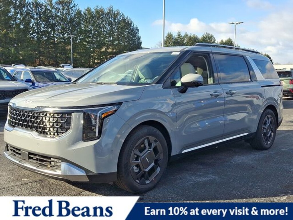 Visit our Website for a Complimentary CarFax Report!!!, Free First Oil Change, Auto Reward Program, 3.51 Axle Ratio, 3rd row seats: split-bench, 4-Wheel Disc Brakes, 8 Speakers, ABS brakes, Air Conditioning, Alloy wheels, AM/FM radio: SiriusXM, Apple CarPlay & Android Auto, Artificial Leather Seat Trim, Auto High-beam Headlights, Automatic temperature control, Brake assist, Bumpers: body-color, Compass, Delay-off headlights, Driver door bin, Driver vanity mirror, Dual front impact airbags, Dual front side impact airbags, Electronic Stability Control, Emergency communication system, Exterior Parking Camera Rear, Four wheel independent suspension, Front anti-roll bar, Front Bucket Seats, Front Center Armrest, Front dual zone A/C, Front fog lights, Front reading lights, Fully automatic headlights, Heated & Ventilated Front Bucket Seats, Heated door mirrors, Heated front seats, Illuminated entry, Knee airbag, Leather Shift Knob, Leather steering wheel, Low tire pressure warning, Memory seat, Navigation System, Occupant sensing airbag, Outside temperature display, Overhead airbag, Overhead console, Panic alarm, Passenger door bin, Passenger vanity mirror, Power 2nd-Row Moonroof, Power door mirrors, Power driver seat, Power Liftgate, Power moonroof, Power passenger seat, Power steering, Power windows, Radio: AM/FM/HD Audio System, Rain sensing wipers, Rear air conditioning, Rear anti-roll bar, Rear reading lights, Rear window defroster, Rear window wiper, Reclining 3rd row seat, Remote keyless entry, Security system, Speed control, Speed-sensing steering, Split folding rear seat, Spoiler, Steering wheel mounted audio controls, Tachometer, Telescoping steering wheel, Tilt steering wheel, Traction control, Trip computer, Turn signal indicator mirrors, Variably intermittent wipers, Ventilated front seats, Wheels: 7.5J x 19" Alloy Dark Edition, Wheels: 7.5J x 19" Black Alloy. 2026 Kia Carnival SX SX V6 FWD Ceramic Silver Price includes: $1500 - KFA Dealer Choice Program: $1500 discount and 5.25% APR for 36 months. $30.08 per $1000 financed. Available to well qualified buyers who finance through Kia Finance America. 506. Exp. 01/02/2026