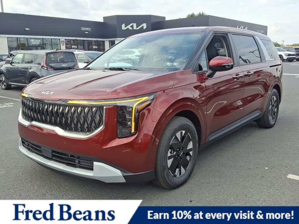 Visit our Website for a Complimentary CarFax Report!!!, Free First Oil Change, Auto Reward Program, 1.6L I4 DGI Hybrid Turbocharged DOHC 16V LEV3-SULEV30, 17" Alloy Wheels, 3rd row seats: split-bench, 4-Wheel Disc Brakes, 6 Speakers, ABS brakes, Air Conditioning, Alloy wheels, AM/FM radio: SiriusXM, Apple CarPlay & Android Auto, Artificial Leather Seat Trim, Auto High-beam Headlights, Automatic temperature control, Brake assist, Bumpers: body-color, Carpeted Floor Mats (8-Passenger), Compass, Delay-off headlights, Driver door bin, Driver vanity mirror, Dual front impact airbags, Dual front side impact airbags, Electronic Stability Control, Emergency communication system, Exterior Parking Camera Rear, Four wheel independent suspension, Front anti-roll bar, Front Bucket Seats, Front Center Armrest, Front dual zone A/C, Front reading lights, Fully automatic headlights, Heated door mirrors, Heated Front Bucket Seats, Heated front seats, Illuminated entry, Knee airbag, Leather Shift Knob, Leather steering wheel, Low tire pressure warning, Navigation System, Occupant sensing airbag, Outside temperature display, Overhead airbag, Overhead console, Panic alarm, Passenger door bin, Passenger vanity mirror, Power door mirrors, Power driver seat, Power steering, Power windows, Radio: Navigation System w/SiriusXM, Rear air conditioning, Rear anti-roll bar, Rear reading lights, Rear window defroster, Rear window wiper, Reclining 3rd row seat, Remote keyless entry, Security system, Speed control, Speed-sensing steering, Split folding rear seat, Spoiler, Steering wheel mounted audio controls, Tachometer, Telescoping steering wheel, Tilt steering wheel, Traction control, Trip computer, Turn signal indicator mirrors, Variably intermittent wipers, 1.6L I4 DGI Hybrid Turbocharged DOHC 16V LEV3-SULEV30. 2026 Kia Carnival Hybrid LXS LXS 1.6L I4 DGI Hybrid Turbocharged DOHC 16V LEV3-SULEV30 FWD Flare Red Price includes: $1000 - KFA Dealer Choice Program: $1000 discount and 5.25% APR for 36 months. $30.08 per $1000 financed. Available to well qualified buyers who finance through Kia Finance America. 506. Exp. 01/02/2026
