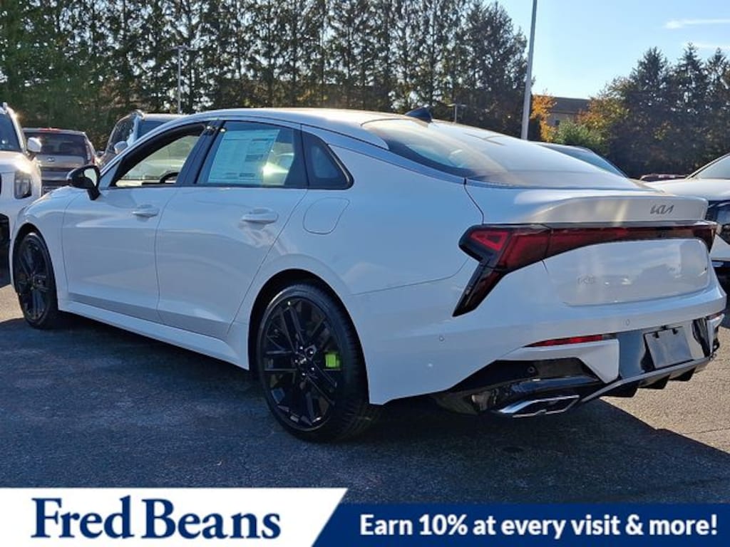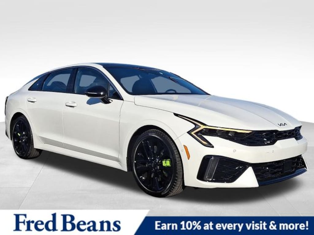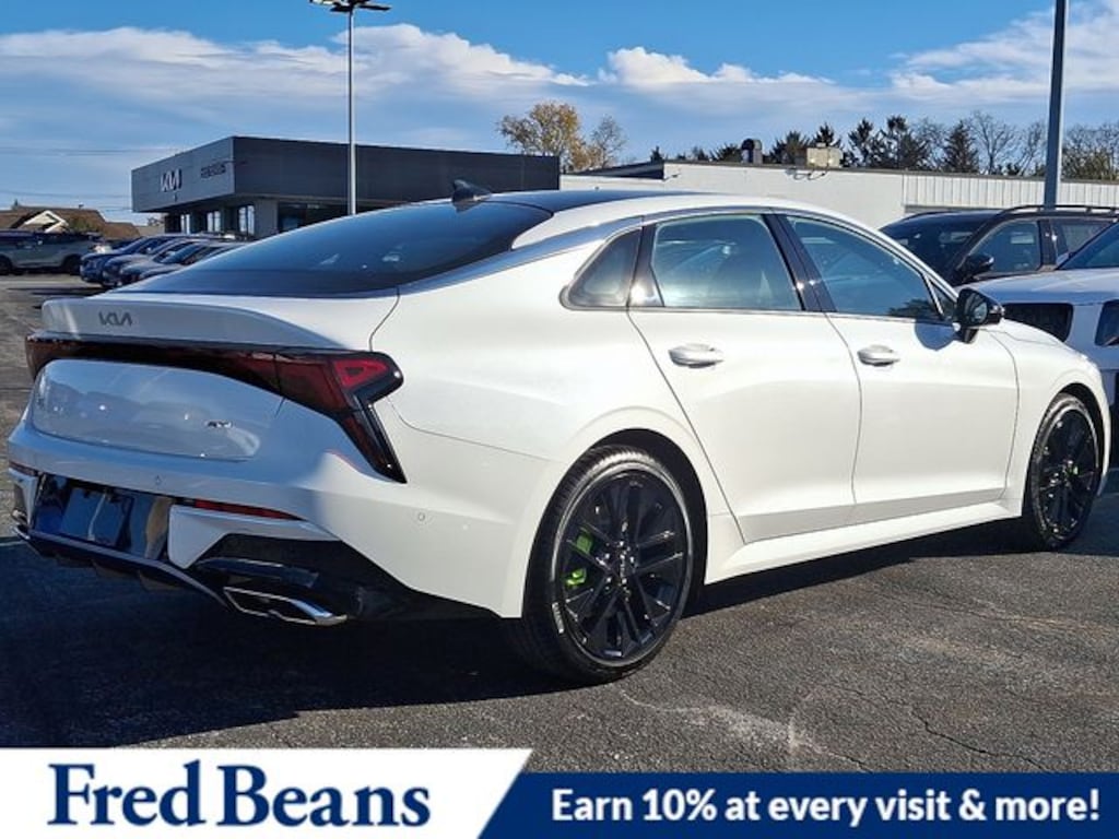 Visit our Website for a Complimentary CarFax Report!!!, Free First Oil Change, Auto Reward Program, 12.3" Instrument Display, 4-Wheel Disc Brakes, 6 Speakers, ABS brakes, Active Sound Design, Air Conditioning, Alloy wheels, AM/FM radio: SiriusXM, Auto High-beam Headlights, Auto Up/Down Front Passenger and Rear Windows, Auto-Dimming Mirror with HomeLink, Automatic temperature control, Blind-Spot View Monitor, Bose Premium Audio, Brake assist, Bumpers: body-color, Carpeted Floor Mats, Delay-off headlights, Driver door bin, Driver vanity mirror, Dual front impact airbags, Dual front side impact airbags, Electronic Stability Control, Emergency communication system: Kia Connect (includes 1 year free trial), Four wheel independent suspension, Front anti-roll bar, Front Bucket Seats, Front Center Armrest, Front dual zone A/C, Front fog lights, Front reading lights, Fully automatic headlights, GT1 Package, Heated door mirrors, Heated front seats, Heated Sport Bucket Seats, Heated Steering Wheel, Illuminated entry, Knee airbag, Leather Shift Knob, Leather steering wheel, Low tire pressure warning, Memory Driver's Seat and Outside Mirrors, Navigation System, Occupant sensing airbag, Outside temperature display, Overhead airbag, Overhead console, Panic alarm, Parking Collision Avoidance-Assist - Reverse, Parking Distance Warning - Side, Passenger door bin, Passenger vanity mirror, Power door mirrors, Power driver seat, Power Folding Mirrors, Power Front Passenger Seat, Power moonroof, Power steering, Power windows, Radio data system, Radio: AM/FM Audio System, Rear anti-roll bar, Rear reading lights, Rear seat center armrest, Rear side impact airbag, Rear window defroster, Remote keyless entry, Security system, Smartphone Digital Key, Speed control, Speed-sensing steering, Split folding rear seat, Sport steering wheel, Steering wheel mounted audio controls, Surround View Monitor, SynTex Seat Trim, Tachometer, Telescoping steering wheel, Tilt steering wheel, Traction control, Trip computer, Turn signal indicator mirrors, Variably intermittent wipers, Ventilated Front Seats, Wheels: 19" x 8.0J Gloss Black Custom Alloy, Wheels: 19" x 8.0J Gloss Black Machined Finish Alloy. 2026 Kia K5 GT GT I4 FWD Snow White Pearl Price includes: $1000 - KFA Dealer Choice Program: $1000 discount and 5.25% APR for 36 months. $30.08 per $1000 financed. Available to well qualified buyers who finance through Kia Finance America. 506. Exp. 01/02/2026
