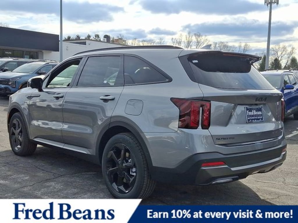 Visit our Website for a Complimentary CarFax Report!!!, Free First Oil Change, Auto Reward Program, 1.6L Turbo GDI 4-Cylinder, 12 Speakers, 3rd row seats: split-bench, 4-Wheel Disc Brakes, ABS brakes, Air Conditioning, All Weather Floor Mats, Alloy wheels, AM/FM radio: SiriusXM, Apple CarPlay & Android Auto, Auto High-beam Headlights, Auto-dimming Rear-View mirror, Automatic temperature control, Brake assist, Bumpers: body-color, Delay-off headlights, Driver door bin, Driver vanity mirror, Dual front impact airbags, Dual front side impact airbags, Electronic Stability Control, Emergency communication system: 911 Connect, Exterior Parking Camera Rear, Four wheel independent suspension, Front anti-roll bar, Front Bucket Seats, Front Center Armrest, Front dual zone A/C, Front fog lights, Front reading lights, Fully automatic headlights, Garage door transmitter: HomeLink, Heated & Ventilated Front Bucket Seats, Heated door mirrors, Heated front seats, Heated rear seats, Heated steering wheel, Illuminated entry, Knee airbag, Leather steering wheel, Low tire pressure warning, Memory seat, Navigation System, Occupant sensing airbag, Outside temperature display, Overhead airbag, Overhead console, Panic alarm, Passenger door bin, Passenger vanity mirror, Perforated Genuine Leather Seat Trim, Power door mirrors, Power driver seat, Power Liftgate, Power moonroof, Power passenger seat, Power steering, Power windows, Radio data system, Radio: AM/FM/SiriusXM Audio System, Rain sensing wipers, Rear anti-roll bar, Rear reading lights, Rear side impact airbag, Rear window defroster, Rear window wiper, Remote keyless entry, Security system, Speed control, Speed-sensing steering, Split folding rear seat, Spoiler, Steering wheel mounted audio controls, Tachometer, Telescoping steering wheel, Tilt steering wheel, Traction control, Trip computer, Turn signal indicator mirrors, Variably intermittent wipers, Ventilated front seats, Wheels: 19" Machine-Finished Aero Alloy, 1.6L Turbo GDI 4-Cylinder. 2026 Kia Sorento Hybrid X-Line SX Prestige X-Line SX Prestige 1.6L Turbo GDI 4-Cylinder AWD Steel Gray Price includes: $2500 - KFA Dealer Choice Program: $2500 discount and 5.25% APR for 36 months. $30.08 per $1000 financed. Available to well qualified buyers who finance through Kia Finance America. 506. Exp. 01/02/2026
