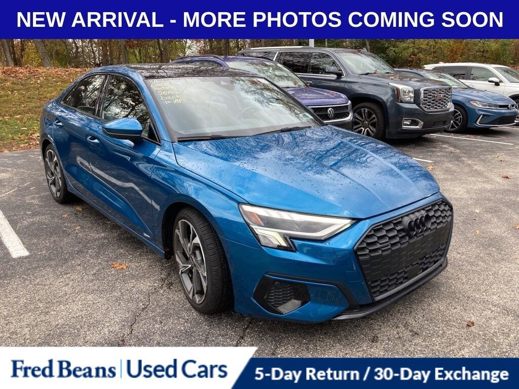 Recent Arrival! 2023 Audi A3 40 Premium quattro 2.0L 4-Cylinder TFSI 7-Speed Automatic S tronic quattro 4D Sedan Atoll Blue Metallic quattro, Santos Brown/Steel Gray Stitching w/Leather Seating Surfaces, ABS brakes, Alloy wheels, Electronic Stability Control, Emergency communication system, Front dual zone A/C, Heated door mirrors, Heated Front Bucket Seats, Heated front seats, Illuminated entry, Low tire pressure warning, Power moonroof, Remote keyless entry, Traction control.CARFAX One-Owner. Clean CARFAX.For better peace of mind all our used vehicles have a 127-point inspection and come with a 5-day return, 30-day exchange (As-Is vehicles are excluded). Our exclusive Auto Rewards Program provides better value with Free First Oil change, Free Pa State Safety inspections, discounts for local merchants and more. Plus, you can earn up to $2000 towards your next vehicle just by servicing with Fred Beans! As Fred Beans always says, our used cars are better because our reputation depends on it.Although every reasonable effort has been made to ensure the accuracy of the information contained on this site, absolute accuracy cannot be guaranteed. This site, and all information and materials appearing on it, are presented to the user "as is" without warranty of any kind, either express or implied. All vehicles are subject to prior sale. Price does not include applicable tax, title, license, processing and/or documentation fees. â¡Vehicles shown at different locations are not currently in our inventory (Not in Stock) but can be made available to you at our location within a reasonable date from the time of your request, not to exceed one week. Residency restrictions may apply.