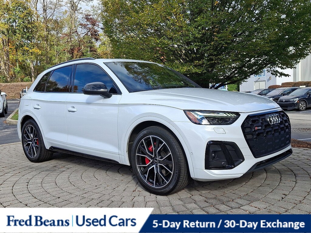 2023 Audi SQ5 Prestige quattro 3.0L TFSI 8-Speed Automatic with Tiptronic quattro 4D Sport Utility Glacier White Metallic Remainder of Factory Warranty, Free First Oil Change, Auto Reward Program, Animation for Headlights & Taillights, Audi Active Lane Assist, Audi Phone Box, Audi Virtual Cockpit Plus, Bang & Olufsen 3D Sound System, Black Exterior Mirror Housings, Black Exterior Trim, Black Optic Package, Convenience Package, Dual Pane Acoustic Glass for Front Side Windows, Fine Nappa Leather Seating Surfaces, Fine Nappa Leather Seats, Hands-On Detection Steering Wheel, Head-Up Display, Heated & Cooled Front Cupholder, Heated Rear Seats, Leather Seating Surfaces, Leatherette Covered Center Console, LED Interior Lighting Plus Package, Matrix-Design LED Headlights w/Headlight Washers, Navigation Package, OLED Taillights, Panoramic Sunroof, Park Assist, Prestige Package, Rear Manual Side Window Shades, Red Brake Calipers, S Sport Package, Sport Adaptive Air Suspension, Sport Rear Differential, Top View Camera System, Traffic Jam Assist, Traffic Sign Recognition, Ventilated Front Seats, Warm Weather Package, Wheels: 20" 5-V Spoke-Star Design.CARFAX One-Owner. Odometer is 3184 miles below market average!For better peace of mind all our used vehicles have a 127-point inspection and come with a 5-day return, 30-day exchange (As-Is vehicles are excluded). Our exclusive Auto Rewards Program provides better value with Free First Oil change, Free Pa State Safety inspections, discounts for local merchants and more. Plus, you can earn up to $2000 towards your next vehicle just by servicing with Fred Beans! As Fred Beans always says, our used cars are better because our reputation depends on it.Although every reasonable effort has been made to ensure the accuracy of the information contained on this site, absolute accuracy cannot be guaranteed. This site, and all information and materials appearing on it, are presented to the user "as is" without warranty of any kind, either express or implied. All vehicles are subject to prior sale. Price does not include applicable tax, title, license, processing and/or documentation fees. â¡Vehicles shown at different locations are not currently in our inventory (Not in Stock) but can be made available to you at our location within a reasonable date from the time of your request, not to exceed one week. Residency restrictions may apply.