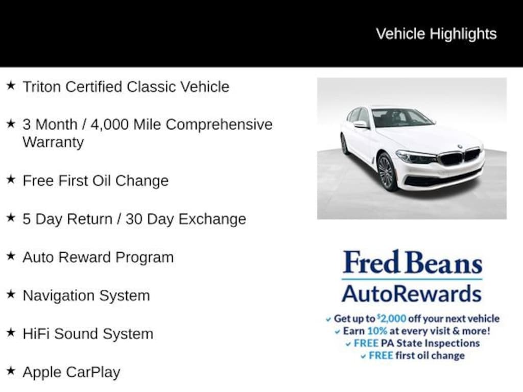 2019 BMW 5 Series 530i xDrive 2.0L 4-Cylinder 8-Speed Automatic AWD 4D Sedan Alpine White Triton Certified Classic Vehicle, 3 Month / 4,000 Mile Comprehensive Warranty, Free First Oil Change, 5 Day Return / 30 Day Exchange, Auto Reward Program, AWD, Black Artificial Leather, Apple CarPlay, HiFi Sound System, Navigation System.