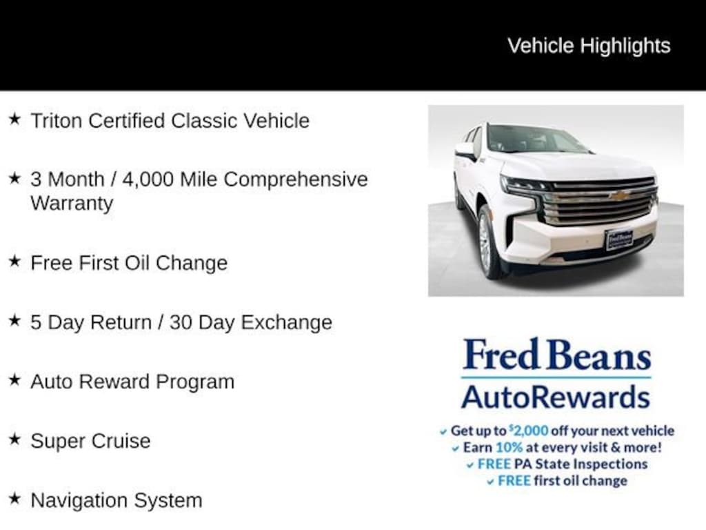 The Suburban High Country is more than just a luxury SUV it's a certified classic that has been meticulously inspected and comes with a comprehensive warranty. With its Triton Certified status, you can drive with confidence, knowing that this vehicle has been thoroughly evaluated and deemed worthy of the Triton seal of approval.