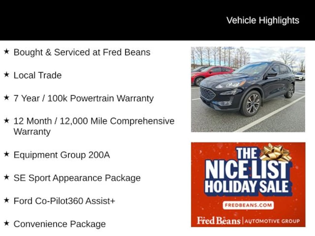 For better peace of mind all our used vehicles have a 127-point inspection and come with a 5-day return, 30-day exchange (As-Is vehicles are excluded). Our exclusive Auto Rewards Program provides better value with Free First Oil change, Free Pa State Safety inspections, discounts for local merchants and more. Plus, you can earn up to $2000 towards your next vehicle just by servicing with Fred Beans! As Fred Beans always says, our used cars are better because our reputation depends on it.