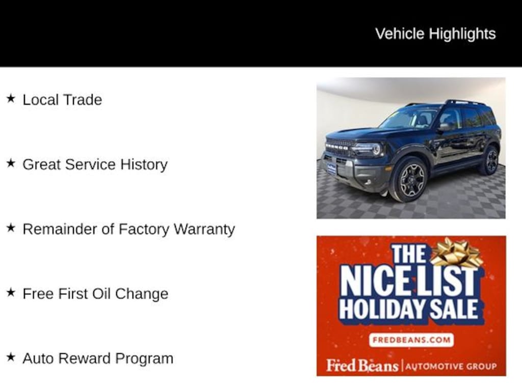I got a 2025 Big Bend with the black diamond off road package. The steel modular front and rear in combination with bush guard gives this year model. A very aggressive off road look. With the ability to easily mount accessories and power them with the factory installed auxiliary switches. Hitch receiver seamlessly mounted into the rear steel bumper flanked by some very chunky recovery points. The upgraded aluminum rims wrapped with Continental all-terrains. It make this the most capable bronco sport yet. The interior of the 2025 has been updated with a new 13 inch touchscreen with Android Auto and apple car play. The lines of the dash flow elegantly from the new infotainment screen to the new all digital 12 inch gauge chaster. Toggling through the different modes on the gauge chaster is very intuitive, and all the displays are laid out very cleanly. Moving from gauge chaster the center storage cubby just below the infotainment screen there is a wireless charger and USB/ USB-c ports. The passenger side of that same cubby gets a handle and a matching one on the roof just in case the driver bucks a little too much. The passenger also gets a mesh storage area. That leads us to the fact this vehicle has tons of storage options all throughout. You have pockets on the sides of the front two seat big enough for the latest new phones. Very generous door storage on all four doors plus huge glove box and center console with 12 volt outlet. The back side of the center console has air vents and another 12 volt outlet plus a 110 outlet. Now getting to the cargo area it is massive for a crossover SUV. With off road package you get a cargo management system and a very nice rubber mat. Under that there is a full size tire plus scissor jack and funnel to use with the capless filler system. On the liftgate there isa pair of very bright led lights turned on with a switch in the cargo area. This feature packed vehicle has tons awesome gadgets and hidden a little homages I spend all day just talk that. At the end of the day it is car. So how does it drive. It is wonderful, the steering and pedal response is beautiful. Rides very smooth and little to no road noise going down the highway. The active cruise control and co-pilot 360 have been very handy. The car literally drives itself most of the time. There is not enough good things I could same about this car. I love it and you pick one too. You will see what I mean.… - 5.0