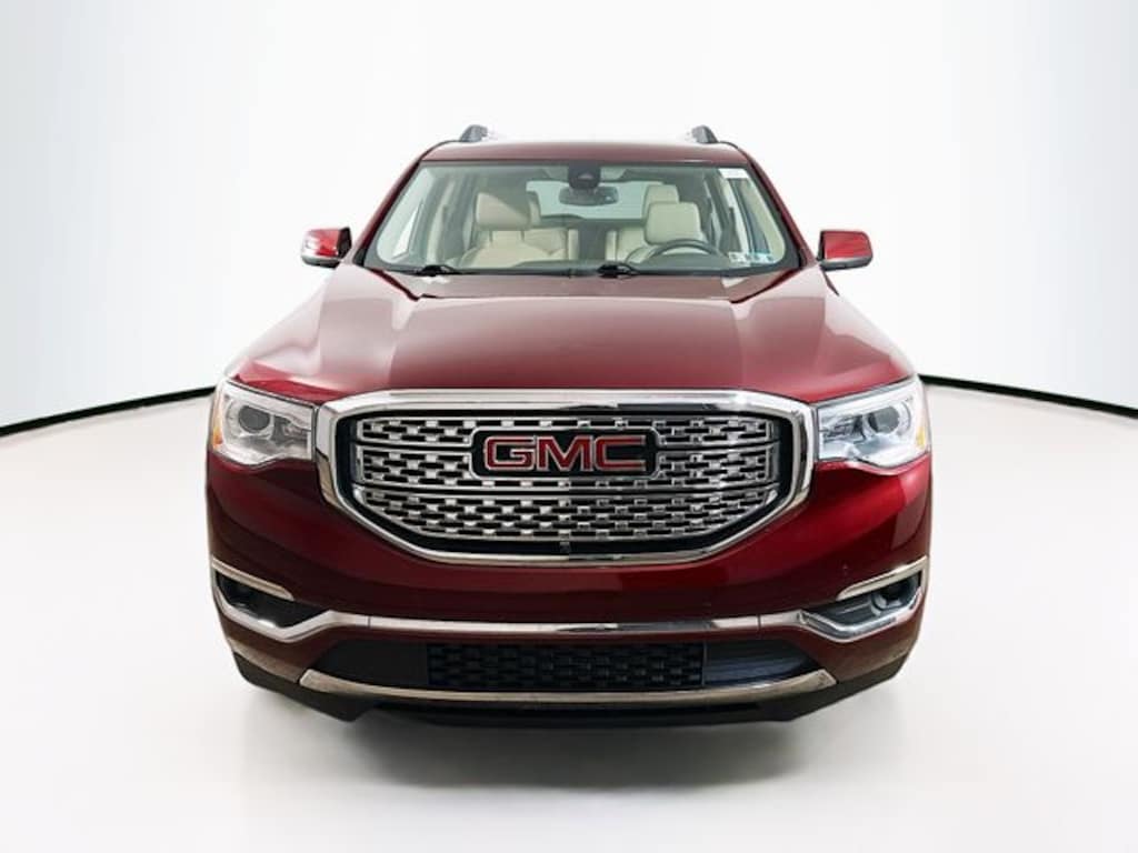 2017 GMC Acadia Denali 3.6L V6 SIDI DOHC VVT 6-Speed Automatic AWD 4D Sport Utility Crimson Red Tintcoat AWD, Cocoa/ Shale Leather, 3.16 Axle Ratio, 3rd Row All-Weather Floor Liner (LPO), 3rd row seats: split-bench, 4-Wheel Disc Brakes, 6-Passenger (2-2-2 Seating Configuration), 8 Speakers, ABS brakes, Air Conditioning, All-Weather Floor Liner (LPO), Alloy wheels, AM/FM radio: SiriusXM, Apple CarPlay/Android Auto, Auto High-beam Headlights, Auto-dimming door mirrors, Auto-dimming Rear-View mirror, Automatic temperature control, Brake assist, Bumpers: body-color, Compass, Delay-off headlights, Driver door bin, Driver vanity mirror, Dual front impact airbags, Dual front side impact airbags, Dual SkyScape 2-Panel Power Sunroof, Electronic Cruise Control w/Set & Resume Speed, Electronic Stability Control, Emergency communication system: OnStar Guidance, Exterior Parking Camera Rear, Floor Liner Package (LPO), Forward Automatic Braking, Four wheel independent suspension, Front anti-roll bar, Front Bucket Seats, Front Center Armrest, Front dual zone A/C, Front fog lights, Front reading lights, Full Speed Adaptive Cruise Control w/Stop/Go, Fully automatic headlights, Garage door transmitter, Heated door mirrors, Heated front seats, Heated rear seats, Heated steering wheel, High-Intensity Discharge Headlights, Illuminated entry, Knee airbag, Low tire pressure warning, Memory seat, Navigation System, Occupant sensing airbag, Outside temperature display, Overhead airbag, Overhead console, Panic alarm, Passenger door bin, Passenger vanity mirror, Perforated Leather-Appointed Seat Trim, Power door mirrors, Power driver seat, Power Liftgate, Power passenger seat, Power steering, Power windows, Preferred Equipment Group 5SA, Premium audio system: IntelliLink, Radio data system, Radio: AM/FM 8" Diagonal Color Touch Navigation, Rear air conditioning, Rear anti-roll bar, Rear reading lights, Rear window defroster, Rear window wiper, Remote keyless entry, Roof rack: rails only, Security system, SiriusXM Satellite Radio, Speed control, Speed-sensing steering, Spoiler, Steering wheel mounted audio controls, Surround Vision System, Tachometer, Technology Package, Telescoping steering wheel, Tilt steering wheel, Traction control, Trip computer, Variably intermittent wipers, Ventilated front seats, Voltmeter, Wheels: 20" x 8" Polished Aluminum (4), AWD, Cocoa/ Shale Leather.