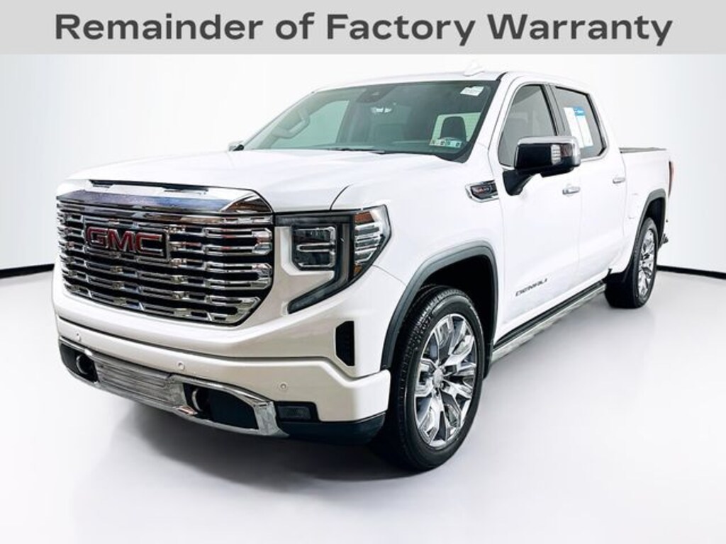 Recent Arrival! 2023 GMC Sierra 1500 Denali EcoTec3 6.2L V8 10-Speed Automatic 4WD 4D Crew Cab Summit White 3 Month / 4,000 Mile Comprehensive Warranty, Remainder of Factory Warranty, 10-Speed Automatic, 4WD, Jet Black Leather, Denali Reserve Package, GMC MultiPro Power Steps, Power Sunroof, Technology Package, Wheels: 22" x 9" Painted Aluminum.