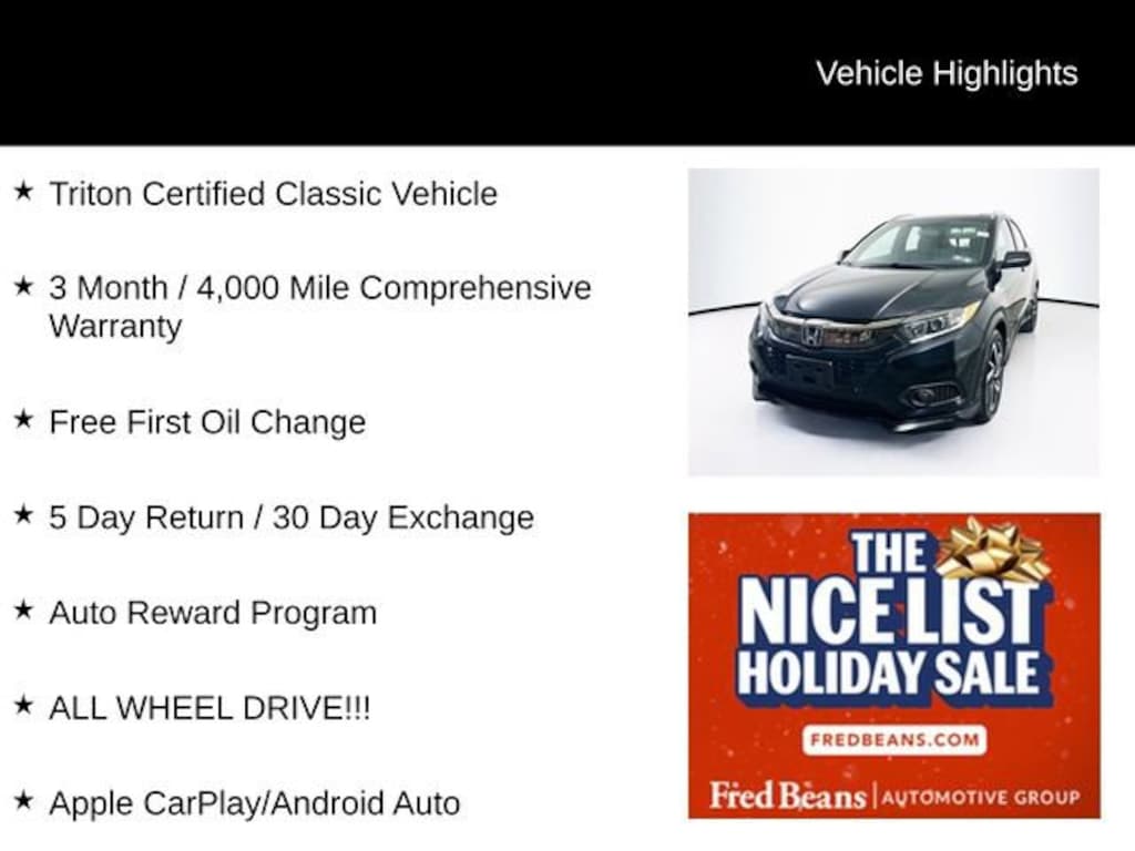 2019 Honda HR-V Sport 1.8L I4 SOHC 16V i-VTEC CVT AWD 4D Sport Utility Crystal Black Pearl Triton Certified Classic Vehicle, 3 Month / 4,000 Mile Comprehensive Warranty, Free First Oil Change, 5 Day Return / 30 Day Exchange, Auto Reward Program, ALL WHEEL DRIVE!!!, Apple CarPlay/Android Auto.