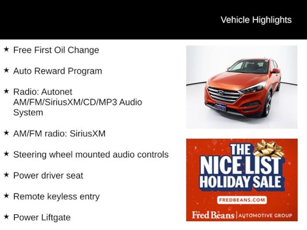 2016 Hyundai Tucson Sport 1.6L I4 DGI Turbocharged DOHC 16V ULEV II 175hp 7-Speed Automatic AWD 4D Sport Utility Sedona Sunset Free First Oil Change, Auto Reward Program, AWD, AM/FM radio: SiriusXM, Delay-off headlights, Exterior Parking Camera Rear, Fully automatic headlights, Heated door mirrors, Heated Front Bucket Seats w/Power Driver's Seat, Heated front seats, Power door mirrors, Power driver seat, Power Liftgate, Radio: Autonet AM/FM/SiriusXM/CD/MP3 Audio System, Remote keyless entry, Steering wheel mounted audio controls.