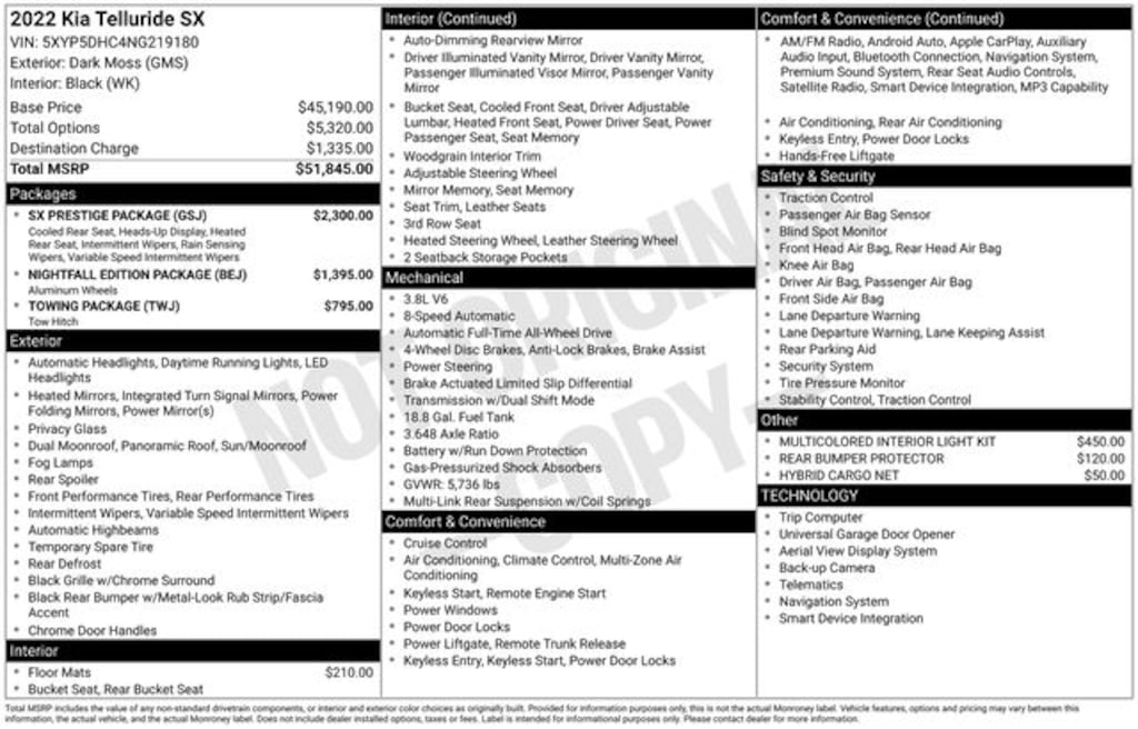 This exceptional Telluride SX is a true testament to Kia's commitment to excellence. With its striking Nightfall Edition styling, premium SX Prestige Package, and robust towing capabilities, this SUV is poised to exceed your expectations and elevate your driving experience.