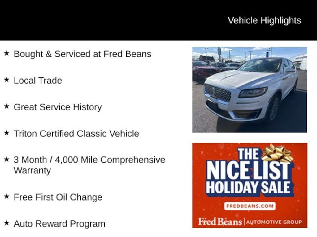 2019 Lincoln Nautilus Reserve 2.0L Turbocharged 8-Speed Automatic AWD 4D Sport Utility White Platinum Bought & Serviced at Fred Beans, Local Trade, Great Service History, Triton Certified Classic Vehicle, 3 Month / 4,000 Mile Comprehensive Warranty, Free First Oil Change, Auto Reward Program.