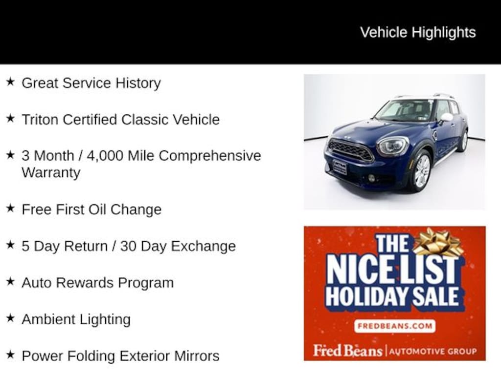 My wife and I have owned 3 regular Mini Coopers and now a 2022 Mini Countryman for myself (my bucket list car ;-) . We also currently own a 2016 Mini Convertible. I absolutely love the fact that you can design your own car online with very unique options, colors, etc.. My 2022 Mini Countryman Cooper S is roomy, sporty, classy, and unique all at the same time. Currently leasing the vehicle but may decide to purchase at lease end for $26,000 in May of 2024. I ordered my Mini Countryman fully loaded with all options except for the sport seats. FWIW, I am 6'4" 250 lbs. and the car fits me fine and is very comfortable. Again, avoid the sport seats if you have a broad back.… - 5.0