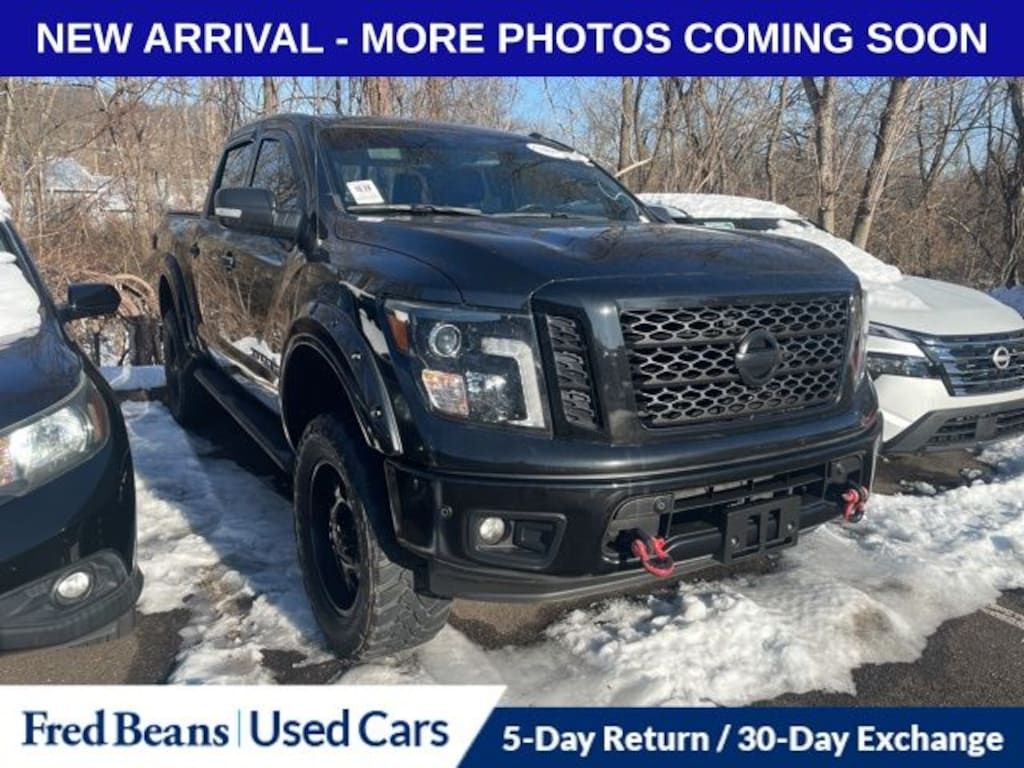 Recent Arrival! 2019 Nissan Titan SV 5.6L V8 7-Speed Automatic 4WD 4D Crew Cab Magnetic Black Metallic Triton Certified Classic Vehicle, 3 Month / 4,000 Mile Comprehensive Warranty, Free First Oil Change, 5 Day Return / 30 Day Exchange, Auto Reward Program, ROCKY RIDGE PACKAGE, 4WD, 110V/12V Outlets In Back Of Center Console, 2 Illuminated USB-A Ports In Back Of Center Console, 4-Pin/7-Pin Wiring Harness Connector (Rear Bumper), Auto-Dimming Rear-View Mirror, Automatic On/Off Headlights, Black Exterior Badging, Black Mirrors & Door Handles, Black Step Rails, Blind Spot Warning w/Rear Cross Traffic Alert, Body Color Front & Rear Bumpers, Body Color Front Grille w/Dark Insert, Charcoal Interior Trim, Chrome Interior Door Locks, Convex Spotter Mirror, Dark Headlamps, Dual Zone Automatic HVAC, Fog Lamps w/Black Fog Lamp Finishers, Front & Rear Parking Sensors, Heated Front Captain's Chairs, Intelligent Key System, Leather-Wrapped Steering Wheel, Midnight Edition, Midnight Edition Floor Mats, Nissan Navigation System, Painted Rear Bumper, Power Sliding Rear Window w/Defogger, Rain Sensing Wipers, Rear Air Conditioning Vents, Receiver Hitch, SV Convenience Package, Wheels: 20" Accessory.