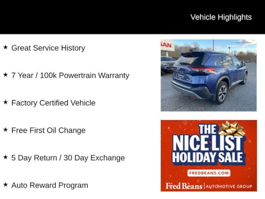 For better peace of mind all our used vehicles have a 127-point inspection and come with a 5-day return, 30-day exchange (As-Is vehicles are excluded). Our exclusive Auto Rewards Program provides better value with Free First Oil change, Free Pa State Safety inspections, discounts for local merchants and more. Plus, you can earn up to $2000 towards your next vehicle just by servicing with Fred Beans! As Fred Beans always says, our used cars are better because our reputation depends on it.