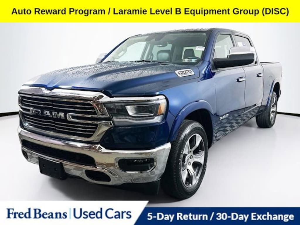 2022 Ram 1500 Laramie HEMI 5.7L V8 Multi Displacement VVT 8-Speed Automatic 4WD 4D Crew Cab Patriot Blue Pearlcoat Triton Certified Classic Vehicle, 3 Month / 4,000 Mile Comprehensive Warranty, Free First Oil Change, 5 Day Return / 30 Day Exchange, Auto Reward Program, Apple CarPlay/Android Auto, Auto High Beam Headlamp Control, Foam Bottle Insert (Door Trim Panel), harman/kardon 19 Speaker Premium Sound, Heated Second Row Seats, Laramie Level B Equipment Group (DISC), ParkSense Front/Rear Park Assist w/Stop, Radio: Uconnect 5 Nav w/8.4 Display, Rain Sensitive Windshield Wipers, Rear 60/40 Folding Split Recline Seat, Rear Underseat Compartment Storage, Remote Tailgate Release.