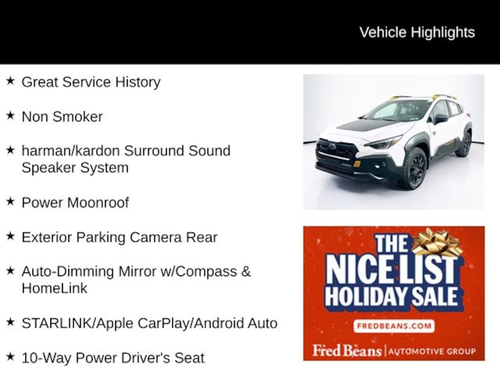 2024 Subaru Crosstrek Wilderness 2.5L 4-Cylinder DOHC 16V Lineartronic CVT AWD 4D Sport Utility Crystal White Pearl Great Service History, Non Smoker, 10-Way Power Driver's Seat, Auto-Dimming Mirror w/Compass & HomeLink, Exterior Parking Camera Rear, harman/kardon Surround Sound Speaker System, Heated front seats, Power Moonroof, STARLINK/Apple CarPlay/Android Auto.