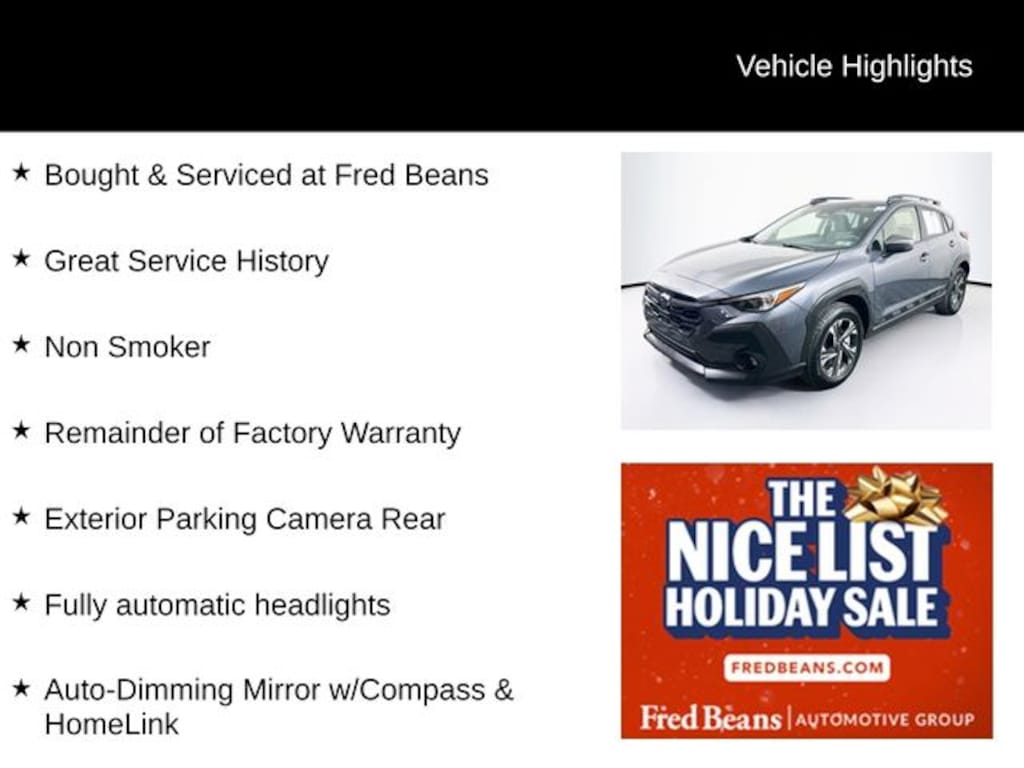 2025 Subaru Crosstrek Premium 2.5L 4-Cylinder DOHC 16V Lineartronic CVT AWD 4D Sport Utility Magnetite Gray Metallic Bought & Serviced at Fred Beans, Great Service History, Non Smoker, Remainder of Factory Warranty, Auto-Dimming Mirror w/Compass & HomeLink, Exterior Parking Camera Rear, Fully automatic headlights.