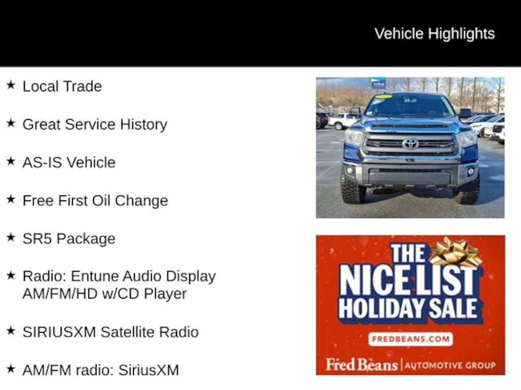 This Tundra is more than just a capable workhorse â" it's packed with a wealth of premium features that elevate the driving experience. Enjoy the convenience of keyless entry, the clarity of SiriusXM satellite radio, and the added safety of advanced technologies like electronic stability control and a rear-view camera.