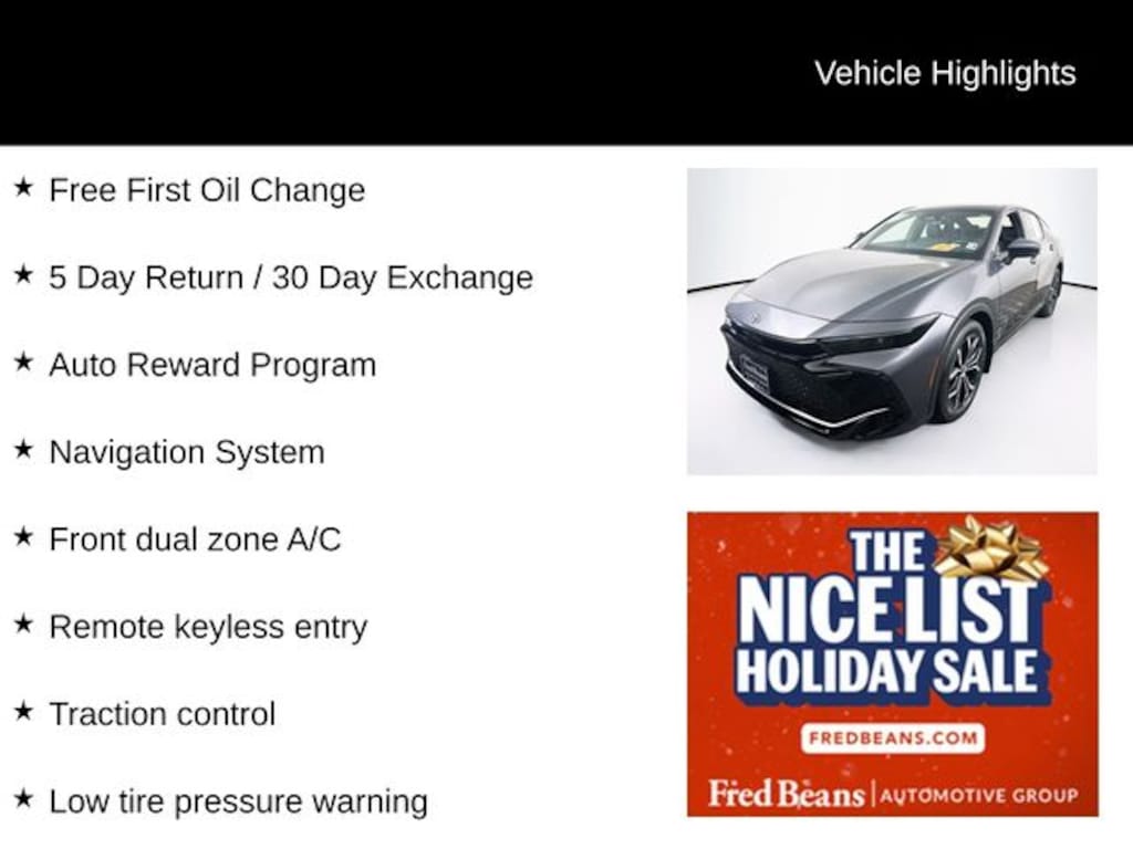 2023 Toyota Crown XLE 2.5L 4-Cylinder DOHC CVT AWD 4D Sedan Magnetic Gray Metallic Free First Oil Change, 5 Day Return / 30 Day Exchange, Auto Reward Program, Crown XLE, 4D Sedan, 2.5L 4-Cylinder DOHC, AWD, Magnetic Gray Metallic, Black w/SofTex Seat Trim, ABS brakes, Active Cruise Control, Alloy wheels, Compass, Electronic Stability Control, Front dual zone A/C, Heated door mirrors, Heated front seats, Illuminated entry, Low tire pressure warning, Navigation System, Remote keyless entry, Traction control.