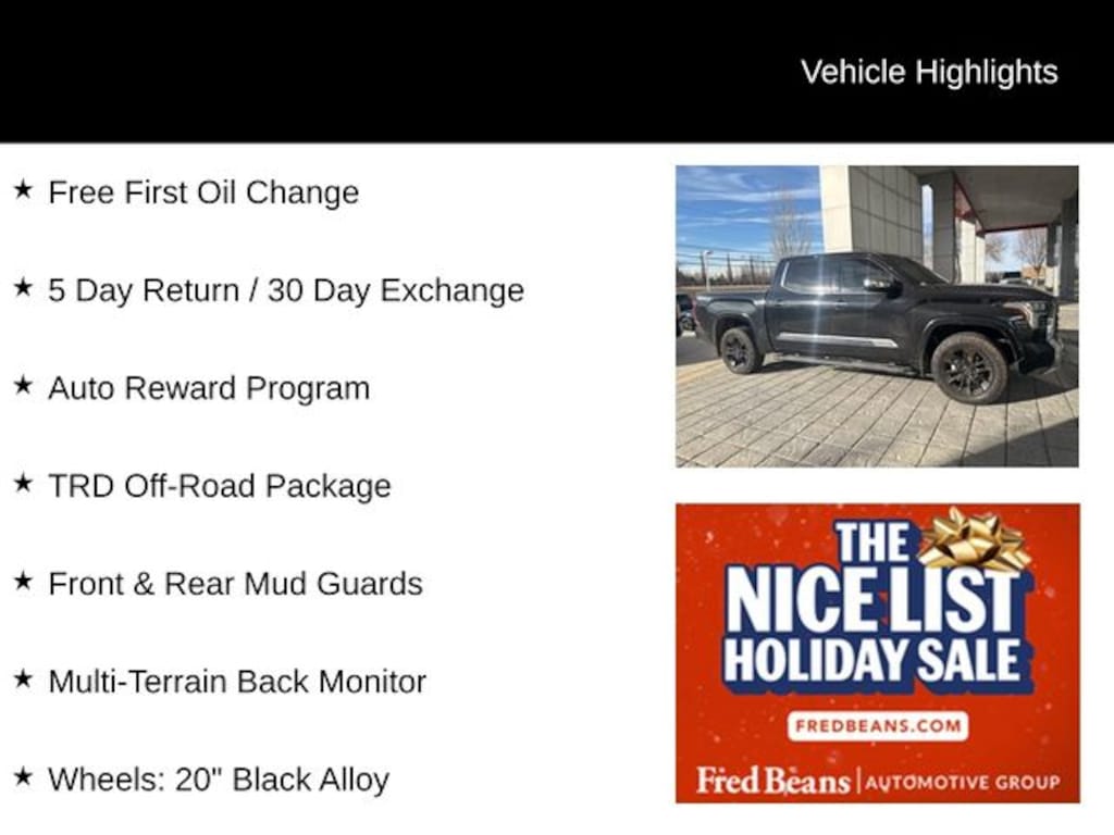 2024 Toyota Tundra 1794 3.4L V6 10-Speed Automatic 4WD 4D CrewMax Midnight Black Metallic Free First Oil Change, 5 Day Return / 30 Day Exchange, Auto Reward Program, Tundra 1794, 4D CrewMax, 3.4L V6, 10-Speed Automatic, 4WD, Midnight Black Metallic, Saddle Tan w/Leather Seat Trim, Front & Rear Mud Guards, Multi-Terrain Back Monitor, TRD Off-Road Package, Wheels: 20" Black Alloy.