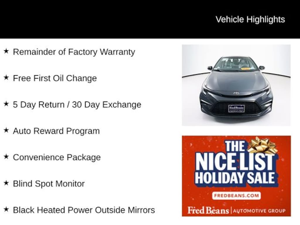 2025 Toyota Corolla FX 2.0L I4 DOHC 16V CVT FWD 4D Sedan Underground Remainder of Factory Warranty, Free First Oil Change, 5 Day Return / 30 Day Exchange, Auto Reward Program, Corolla FX, 4D Sedan, 2.0L I4 DOHC 16V, CVT, FWD, Underground, Moonstone w/Fabric Seat Trim, Black Heated Power Outside Mirrors, Blind Spot Monitor, Convenience Package.